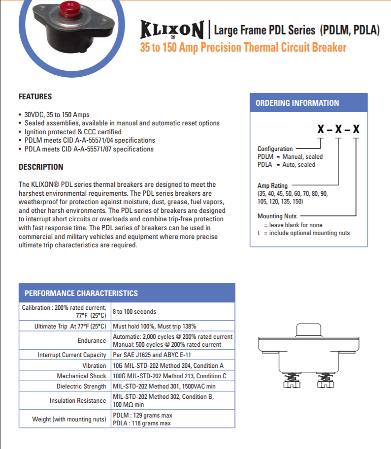 美国Sensata/森萨塔Klixon热断路器PDLM系列PDLA系列热断路器