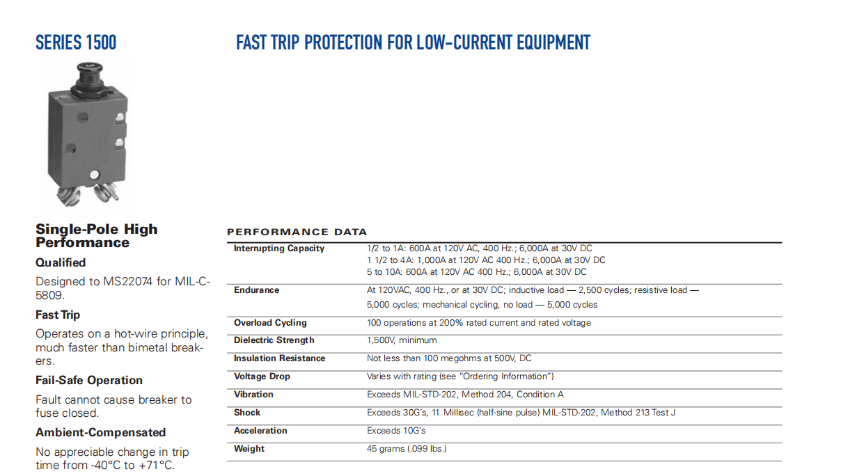 这是唯一的热热线类型可从中获得半安培。1500是一个断路器具有快速出行功能
