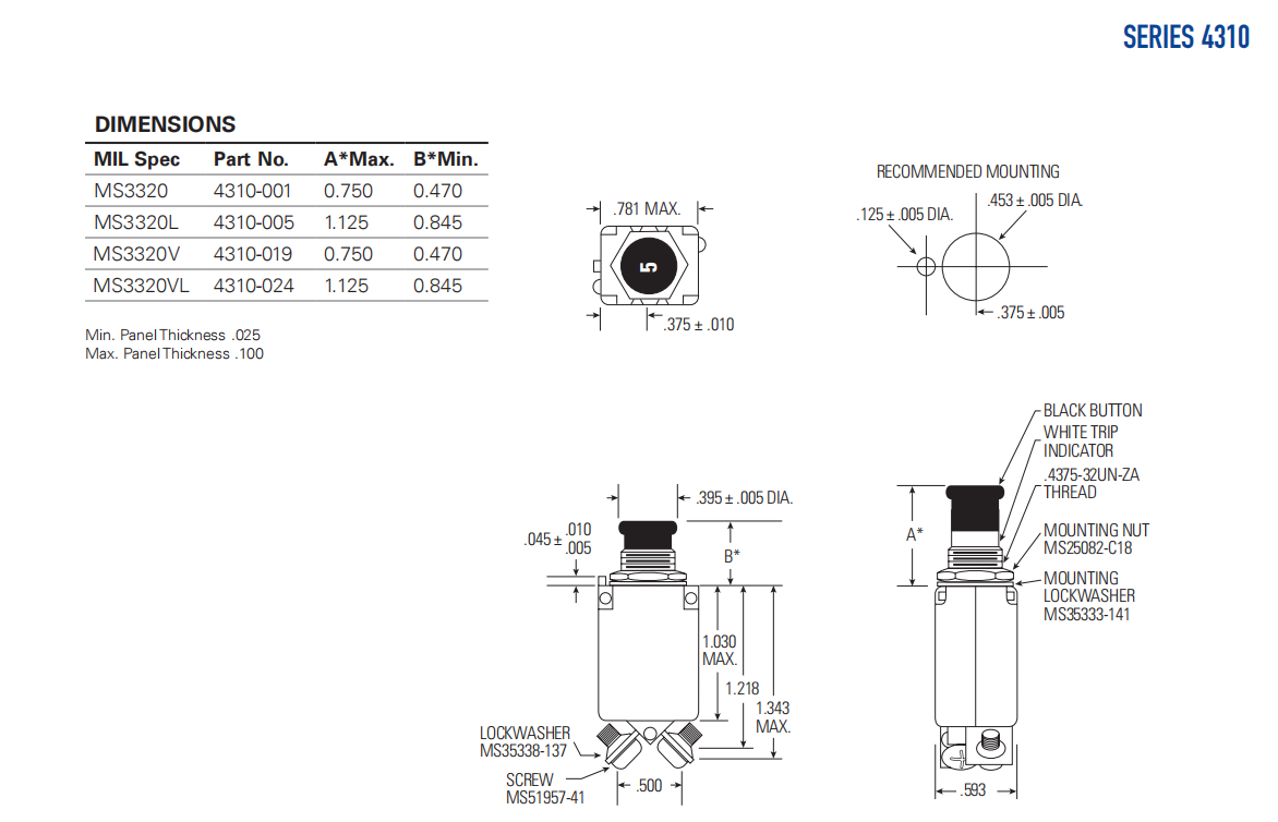 MS Approved 10 0.28 MS3320-10 4310-001-10 MS3320-10L 4310-005-10 MS3320-10V 4310-019-10 MS3320-10VL 4310-024-10